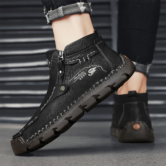 (⏰Last Day 70% OFF🔥)Men's Top-Quality Motorcycle Boots Hand-Stitched Genuine Leather Boots-Wide Toe, Waterproof, Anti-Slip, Anti-Sprain,Suitable for Work, Driving, Hiking