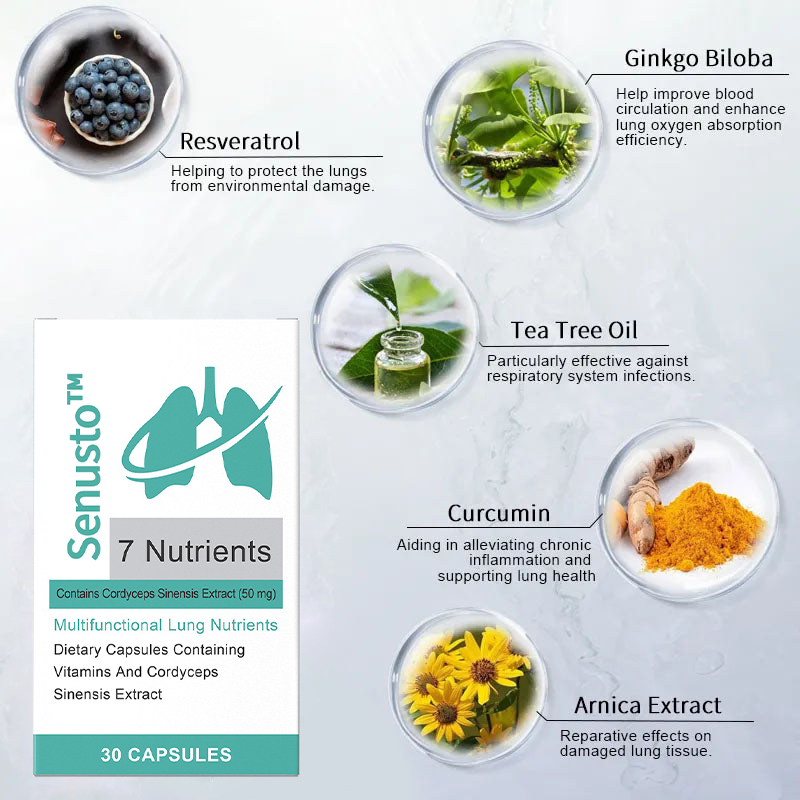 Using Senusto™ Lung Support, you can easily clear mucus and waste from your lungs, purify the upper respiratory tract, and repair damage caused by allergies, asthma, dust, and smoking. This convenient product provides an effective opportunity for individuals with weak respiratory systems to restore their breathing ability.