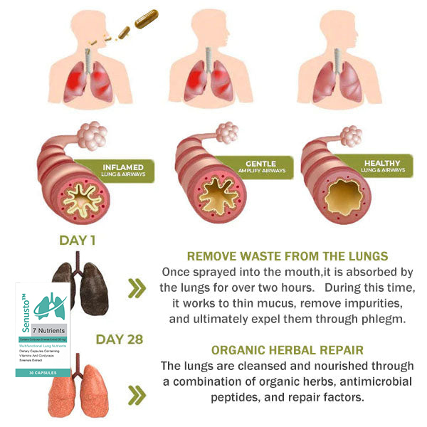 Senusto™ Lung Support is made with natural ingredients that are gentle on your system but powerful in effect, offering a safe and effective treatment option with no serious side effects. -