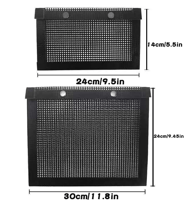 Made of eco-friendly premium, food-grade PTFE material, flexible mesh material, non-toxic, odorless, prevent food sticking & 2 press studs.