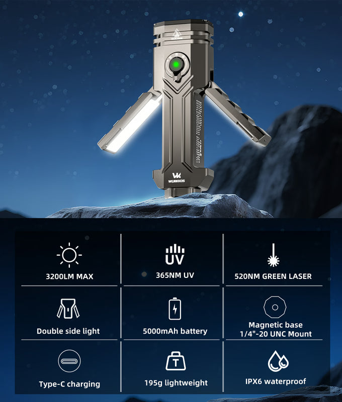 WURKKOS HD02: Magnetic Deformation Flashlight with 4 Beams