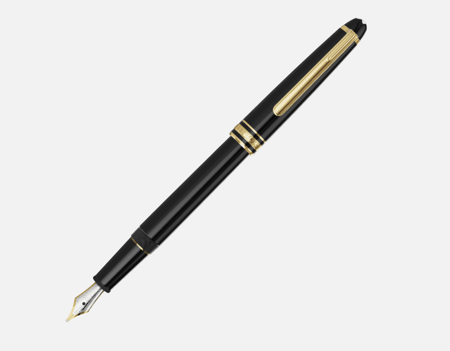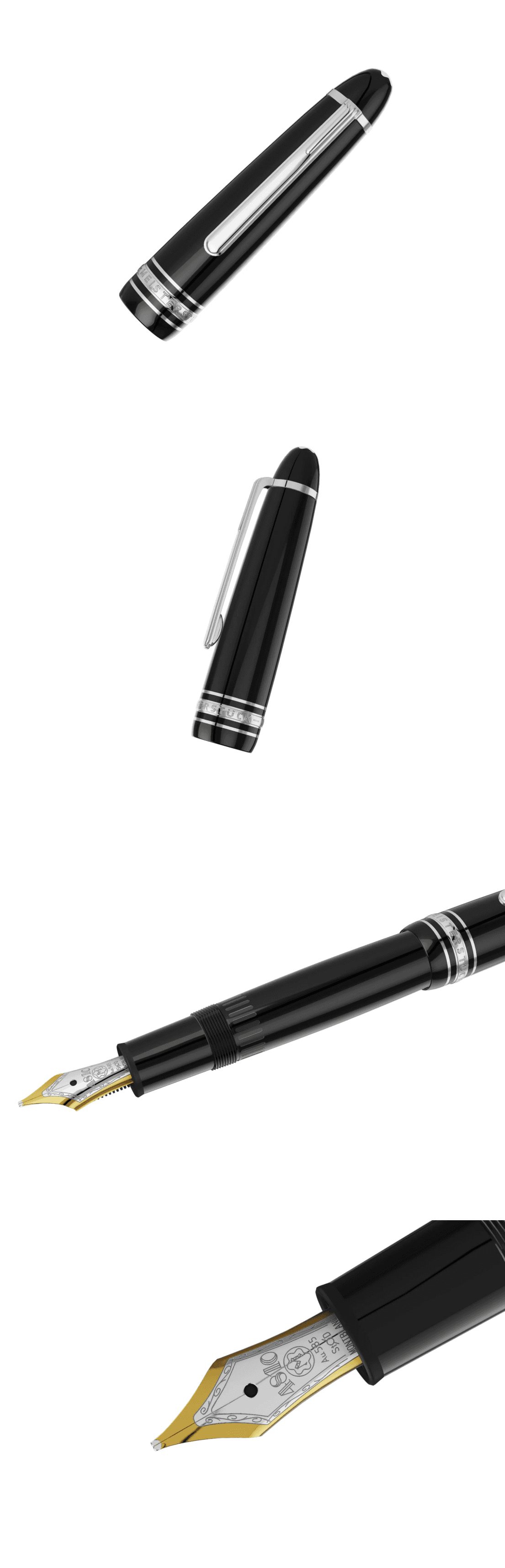 The Meisterstück Classique fountain pen has become an icon of striking design. The barrel and cap are crafted from black precious resin inlaid with the white Montblanc emblem. Three platinum-plated rings embossed with the Montblanc lettering, a platinum-plated clip and a handcrafted gold nib underline the timeless design of the legendary fountain pen. To express your individual personality, Montblanc offers a free engraving service with names or initials.