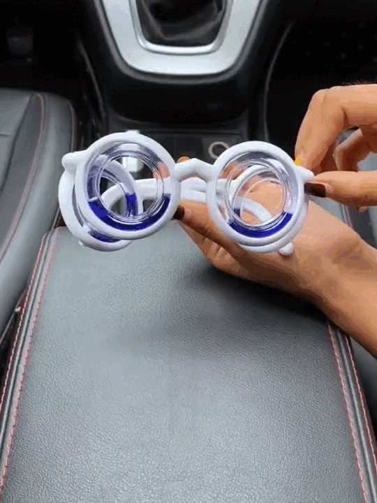 [Anti-Sickness Glasses] The blue liquid inside the round rows of frames flows with the bumps, creating an artificial horizontal line on the front and side of your field of vision, allowing visual information and cochlear signals to be coordinated in unison.