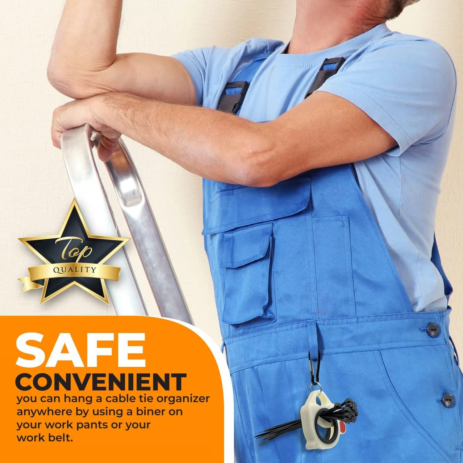 CONVENIENT-You can hang a cable tie organizer anywhere by using a biner on your work pants or your work belt.
